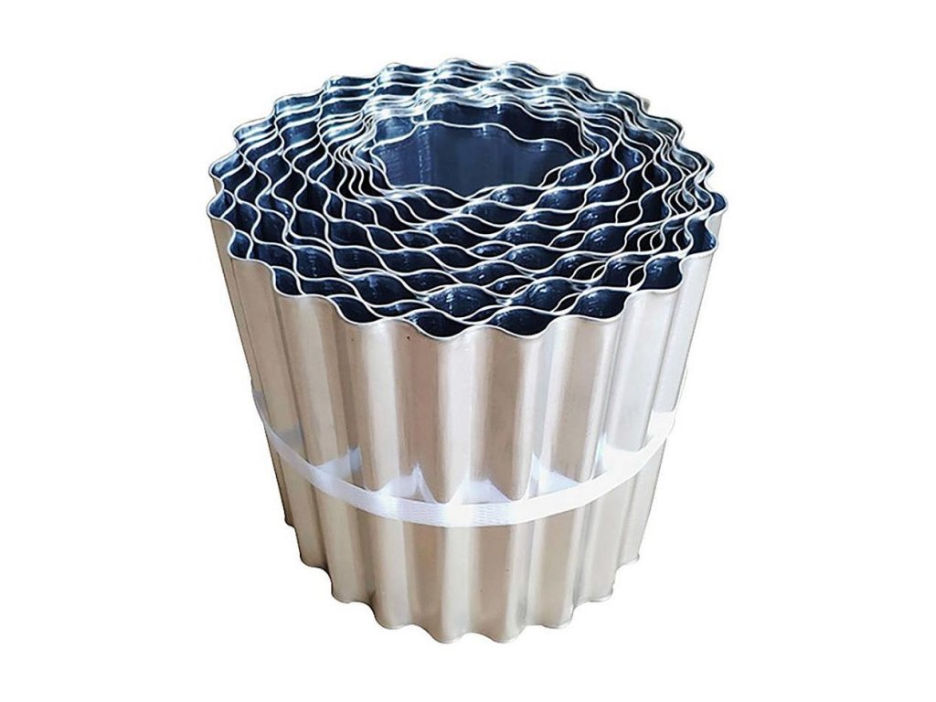 POPIS Trávníkový lem je určen k oddělování trávníku od květinového záhonu nebo od jiného terénu, který nelze sekat. Lem je vyroben z kovu a je schopen odolat nepříznivým povětrnostním podmínkám. SPECIFIKACE Šířka: 150 mm Délka: 6 m Tloušťka: 1 mm