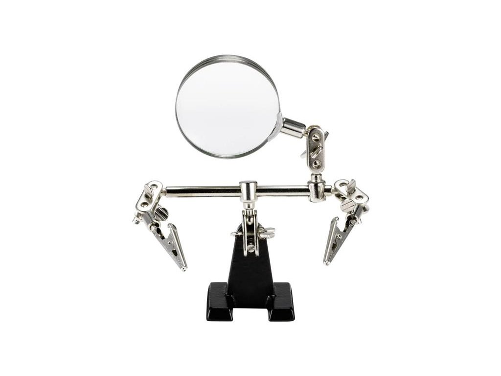 Třetí ruka TIPA ZD-10D s lupouTato třetí ruka s lupou je skvělým pomocníkem pro práci na malých deskách s plošnými spoji, součástkách, hodinách, atd. Litinový podstavec zároveň zajišťuje potřebnou stabilitu.