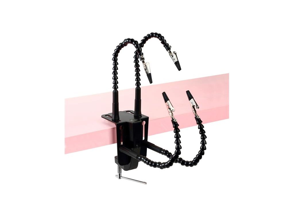 Tato univerzální „pomocná ruka“ ZD-11N se stolní svorkou může být použita k držení součástek, jako jsou např. desky plošných spojů (PCB), nebo drobných dílů při pájení, opravách elektroniky a dalších precizních činnostech (hobby projekty a modelářství) v libovolném úhlu. Díky robustní konstrukci a svorce fixujete materiál pevně na pracovní desce bez potřeby přidržovat ho rukou, což vám usnadní práci a zvýší přesnost. Čtyři flexibilní ramena zakončená krokodýlky umožňují libovolné nastavení, což výrazně usnadňuje přesnou manipulaci při práci.