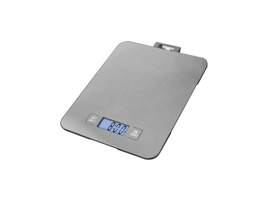 Předností váhy je dobře čitelný displej s podsvícením. Přesnou hmotnost bez potíží uvidíte i za horších světelných podmínek. Při práci v kuchyni se vám bude hodit údaj o čase a také funkce minutky. Váha se stane vaším společníkem, kterého budete mít rádi po ruce i na očích – díky výsuvnému oušku pro zavěšení.