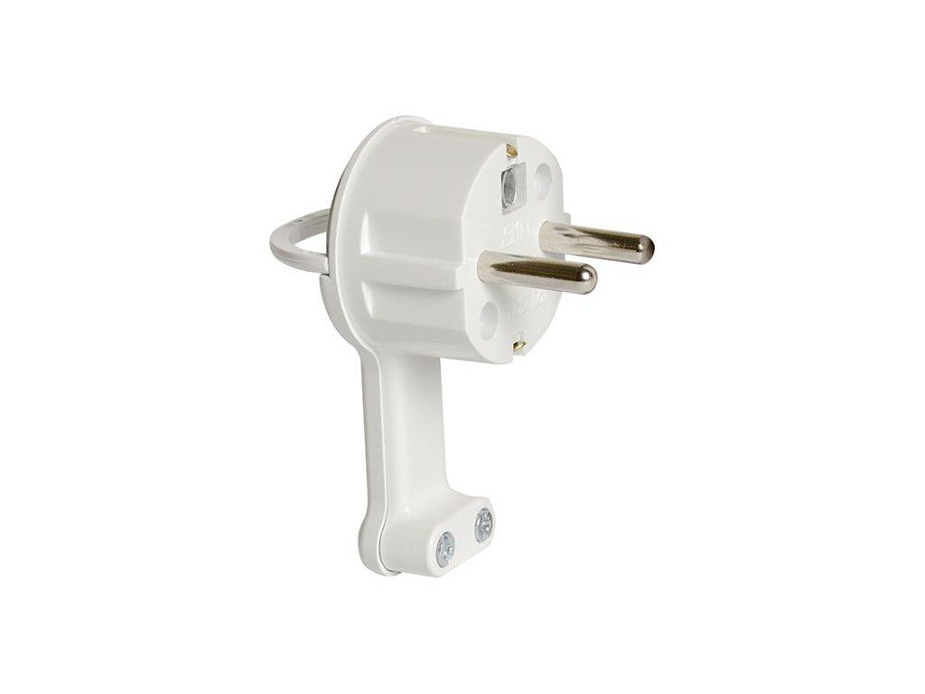 Ultra plochá úhlová zástrčka se skládací rukojetí. 2P+Z Uni-Schuko uzemňovací zástrčka. Max. zatížení: 16 A. Stupeň krytí: IP20. Barva: bílá.