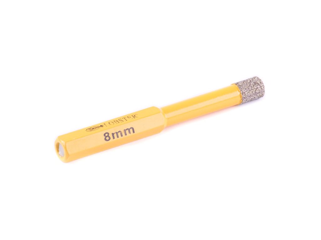 SPECIFIKACEDruh: korunkový 8mmUchycení: šestihranSystím chlazení: voskDoporučené otáčky: 2000-2800 ot/minPoužití na vrtání: porcelánu, mramoru, žulyDoporučené vrtání s vodičem na vrtáky 104250.Vždy vrtat bez příklepu.
