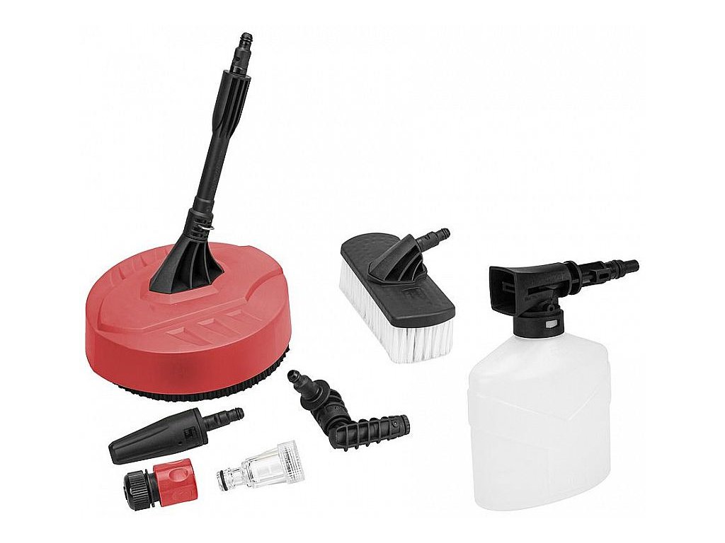 | Standardní výbava: | Vysokotlaký čistič Worcraft HC24-120, rychlospojka s filtrem, turbotryska, tryska pro těžko dostupná místa, terasový čistič, čistící kartáč, napěňovací nádoba, stříkací pistole |