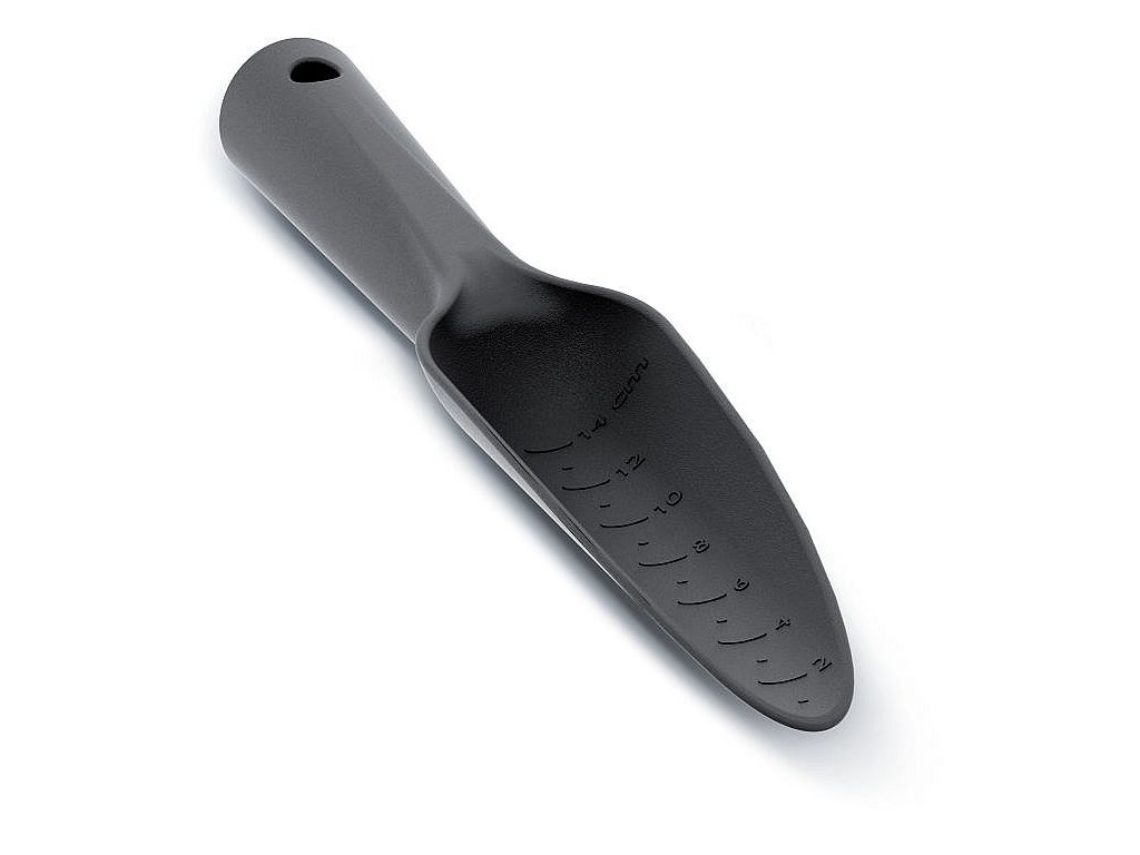 kterou lze kontrolovat na měřicí stupnici až do hloubky 14 cm. Rukojeť je vybavená závěsným otvorem pro lepší uskladnění.