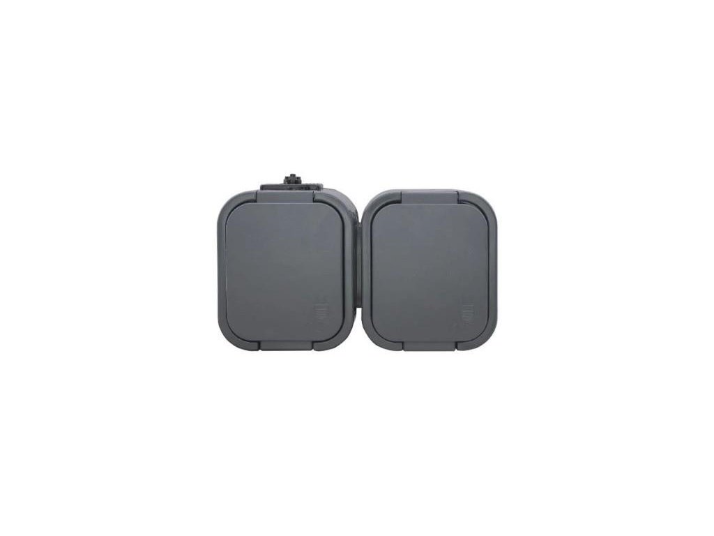 NT-6B2 zásuvka dvojnásobná 2x2p+Z 16A/250V s víčkem IP54 šedá