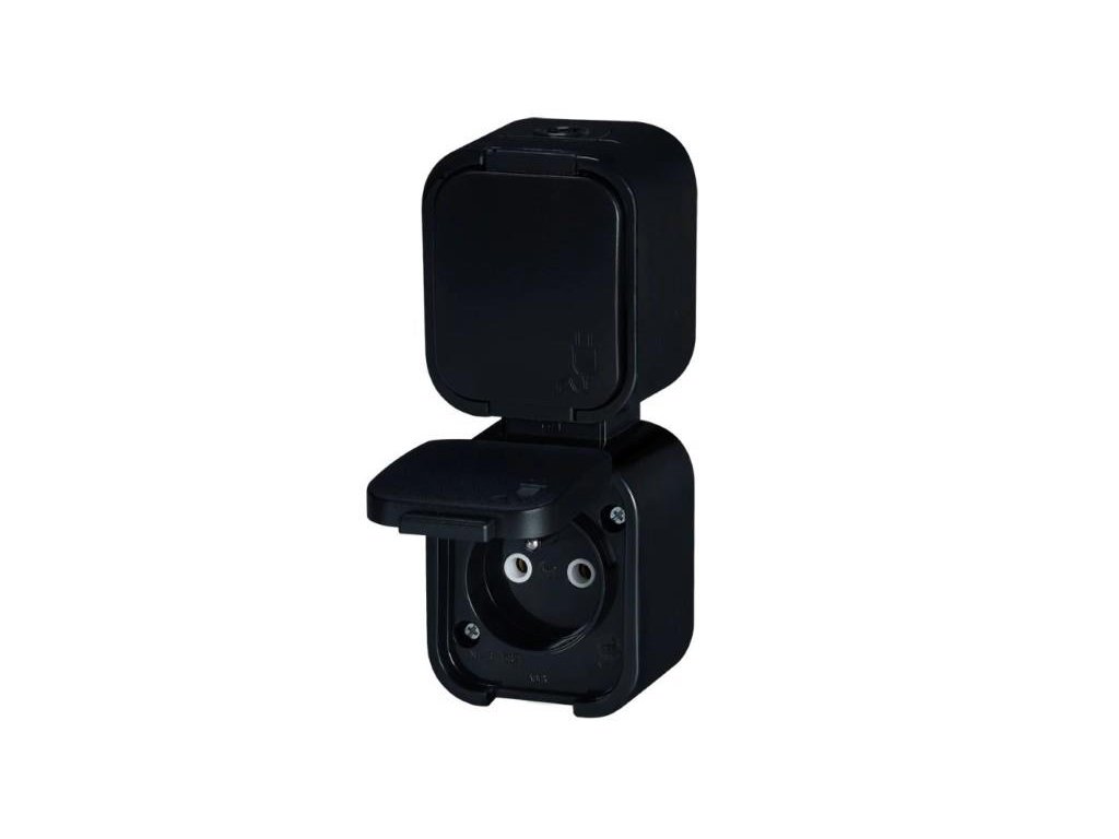 NT-6B2/P zásuvka dvojnásobná 2p+Z s víčkem IP54 černá vertikální