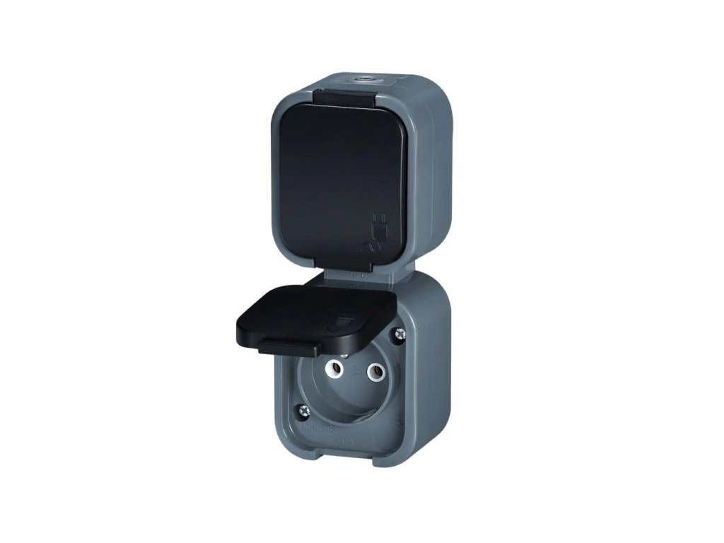 NT-6B2/P zásuvka dvojnásobná 2p+Z s víčkem IP54 šedá vertikální