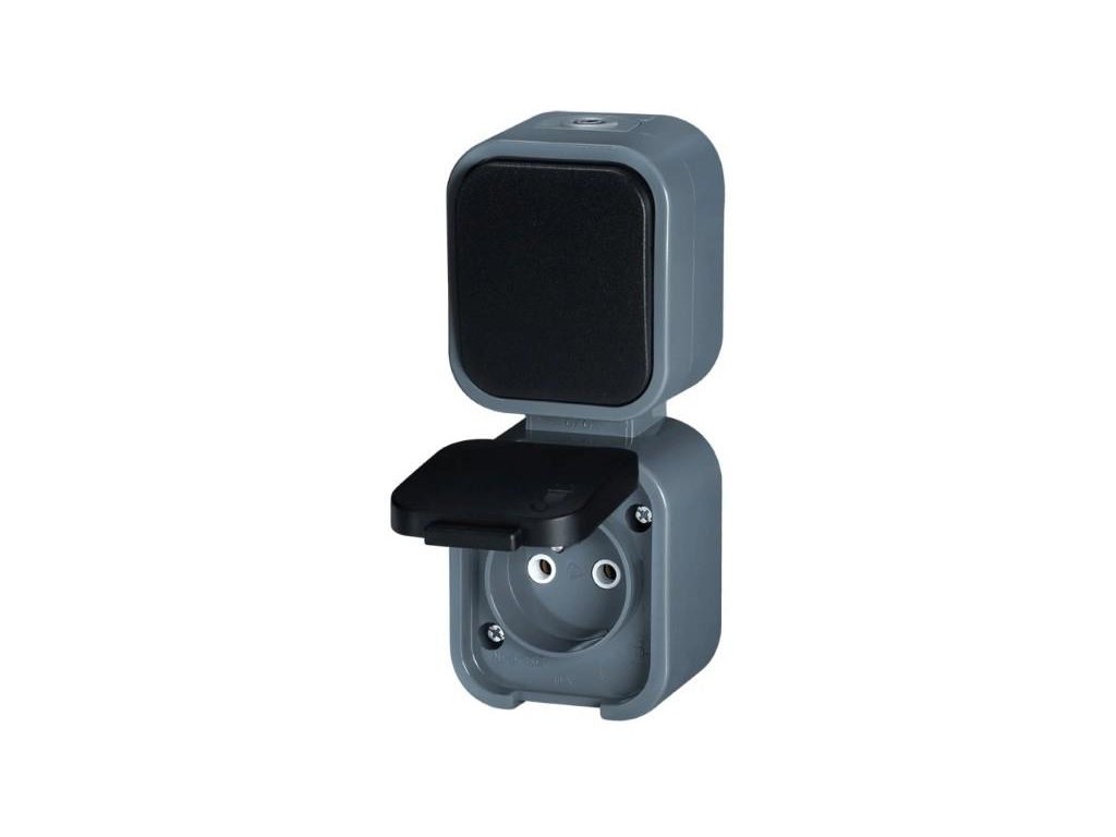 GWN-B2/P zásuvka jednonásobná 2p+Z s víčkem + spínač IP54 šedá-černá vertikální
