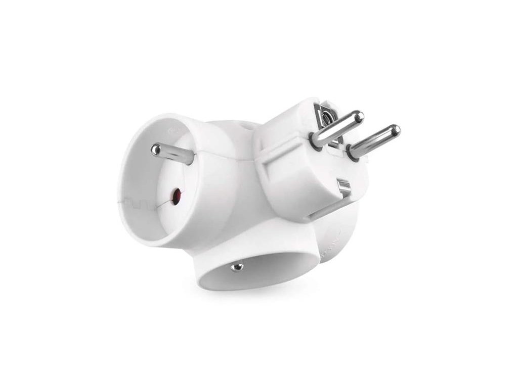 Rozbočovací zásuvka 3×, kulatá, bílá (Adaptor trojnásobný rozbočovací.).