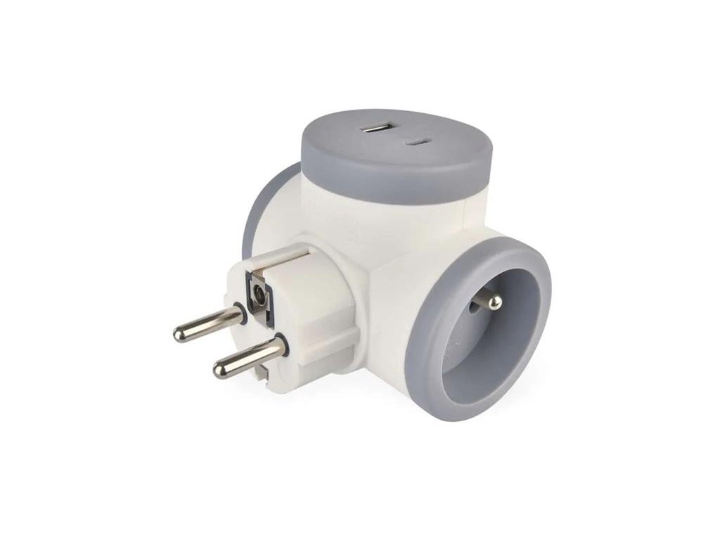 Rozbočovací zásuvka 2×, 1×USB-A+1×USB-C, bílo-šedá. Kvalitní adaptér se 2 zásuvkami a 2 USB porty. Maximální zatížení 3 680 W (250 V, 16 A) umožňuje připojení několika zařízení ve vnitřním prostředí.