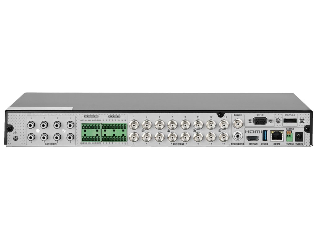 Rekordér spolupracuje jak se síťovými, tak i analogovými kamerami 8Mpx; 5Mpx; 4Mpx; 3Mpx a 2Mpx. Maximální rozlišení záznamu pro kamery pracující v systému AHD / CVI / TVI a IP je 1280×1936 (5Mpx Lite) při rychlosti 10 snímků/s (Analog HD) a 25 snímků/s (IP). Přenášený obraz lze archivovat na dvou pevných discích HDD s kapacitou až 12 TB každý. Zařízení je vybaveno portem HDMI, portem VGA, eSATA, alarmovým vstupem/výstupem a 2 porty USB. Použitý audio rozhraní RCA umožňuje připojení k systému PA a rozhraní RS485 umožňuje snadné ovládání kamery nebo ovládací klávesnice PTZ. HDR také podporuje 16 audio kanálů pro kamery Analog HD, díky čemuž je možné přímé přenos zvuku po koaxiálním kabelu z kamery vybavené mikrofonem.