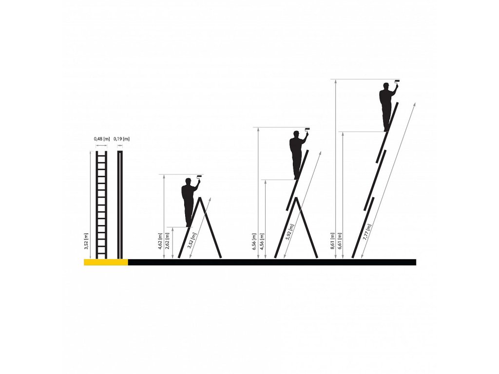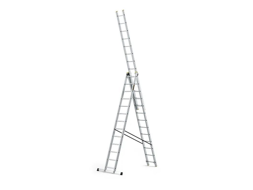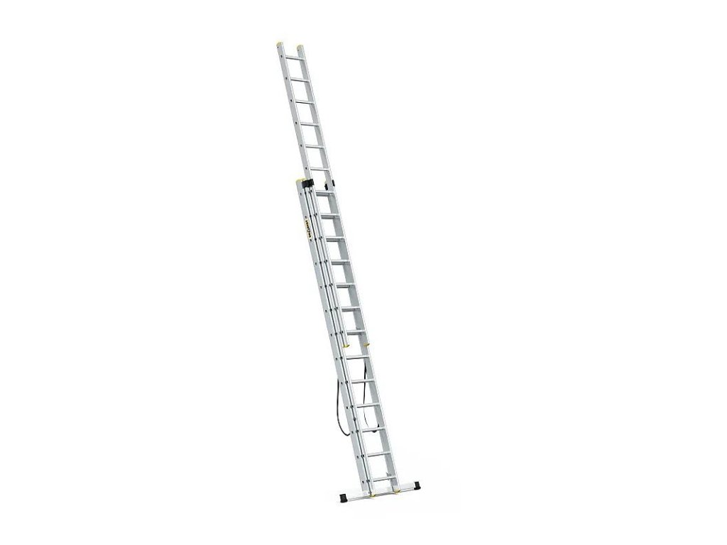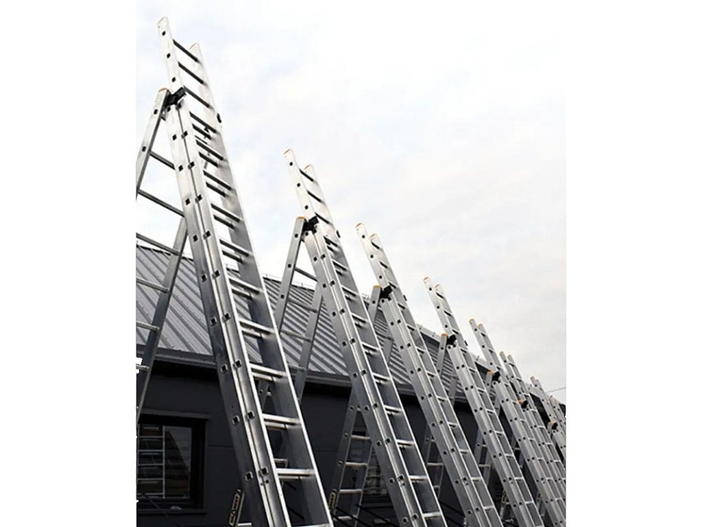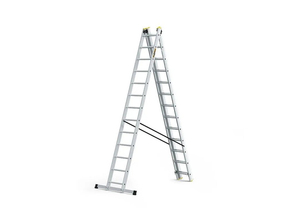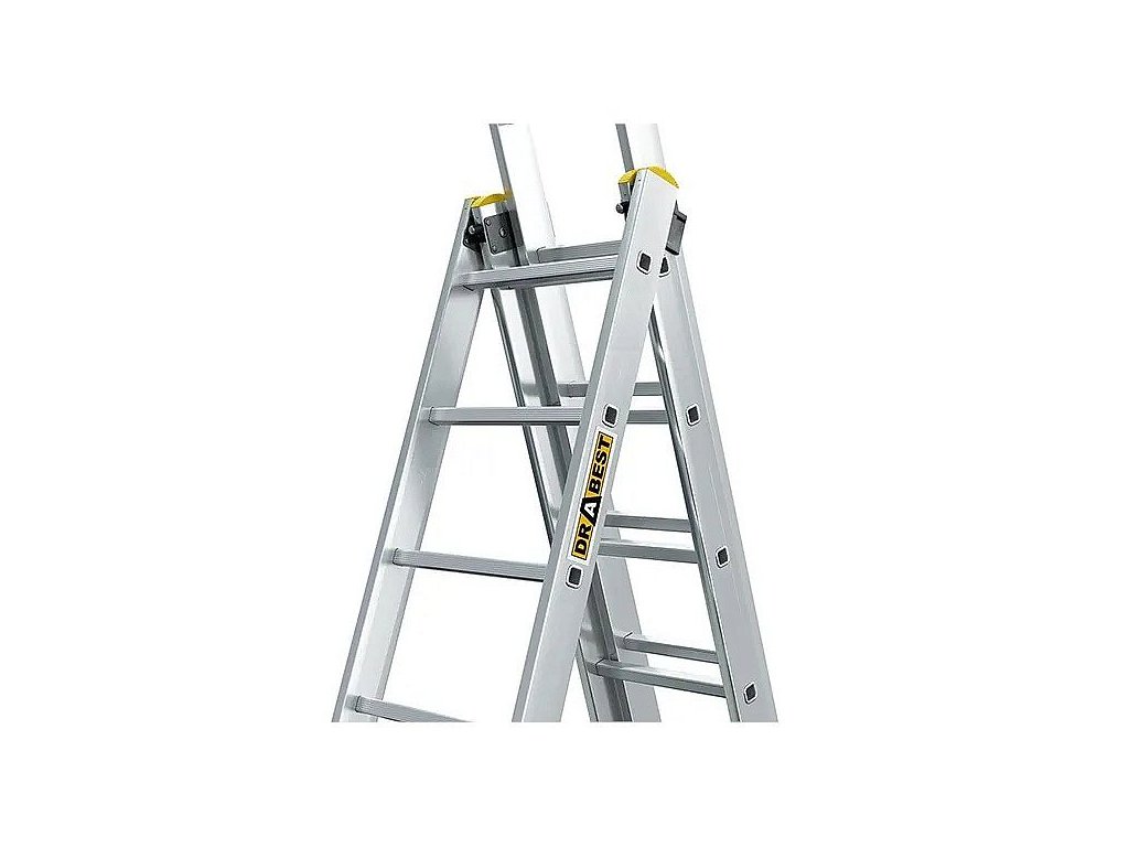 POPIS Moderní model multifunkčního žebříku PRO, extrémně odolný výrobek pro nejnáročnější zákazníky. Perfektní pracovní nástroj pro specialisty, kteří hledají nejvyšší standardy bezpečnosti a odolnosti. Silné podélníky s profilem 82 mm x 25 mm Možnost rozložení žebříku v nakloněné, samostatně stojící poloze a s vysunutým třetím prvkem Protiskluzové upínací nožky Vylepšený stabilizátor namontovaný pomocí šroubů Reliéfní příčky s profilem 28 x 28 mm Přídavné nárazníky usnadňují umístění žebříku do volně stojící polohy Pevné háky a automatické zámky zaručují plnou stabilitu žebříku Shoda s normou EN 131 Bezpečnostní certifikát TÜV Rheinland Možnost dát na schody žebřík Rozměry: A1: 6,56 m A2: 8,61 m B1: 3,52 m B2: 7,77 m C: 0,48 m G: 0,19 m Hmotnost: 24,60 kg