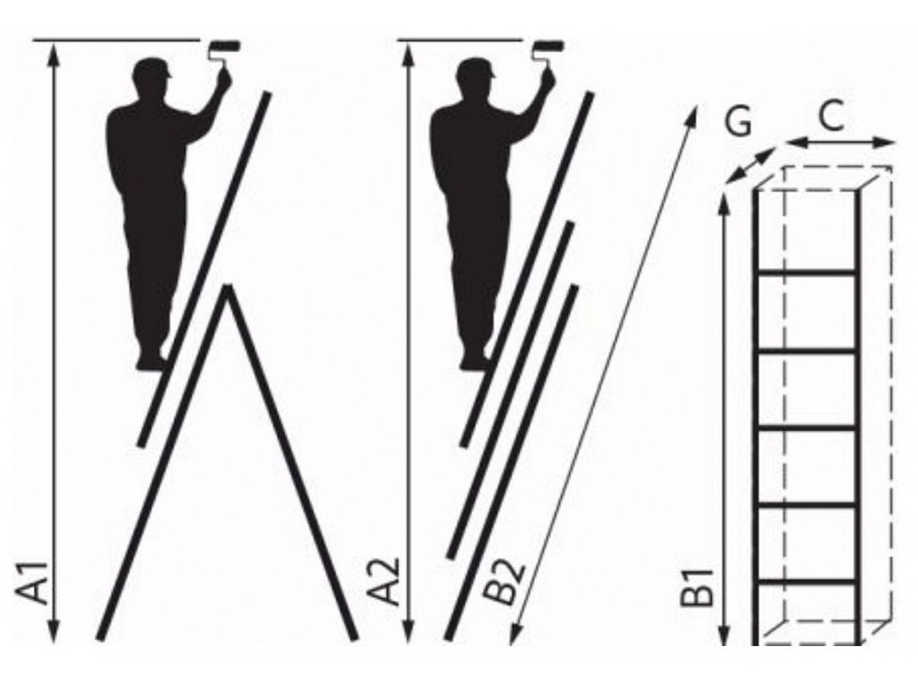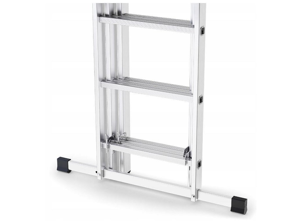 Černé upínací protiskluzové nožičky a nárazníky usnadňují postavení žebřík do volně stojící polohy.