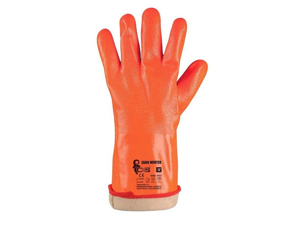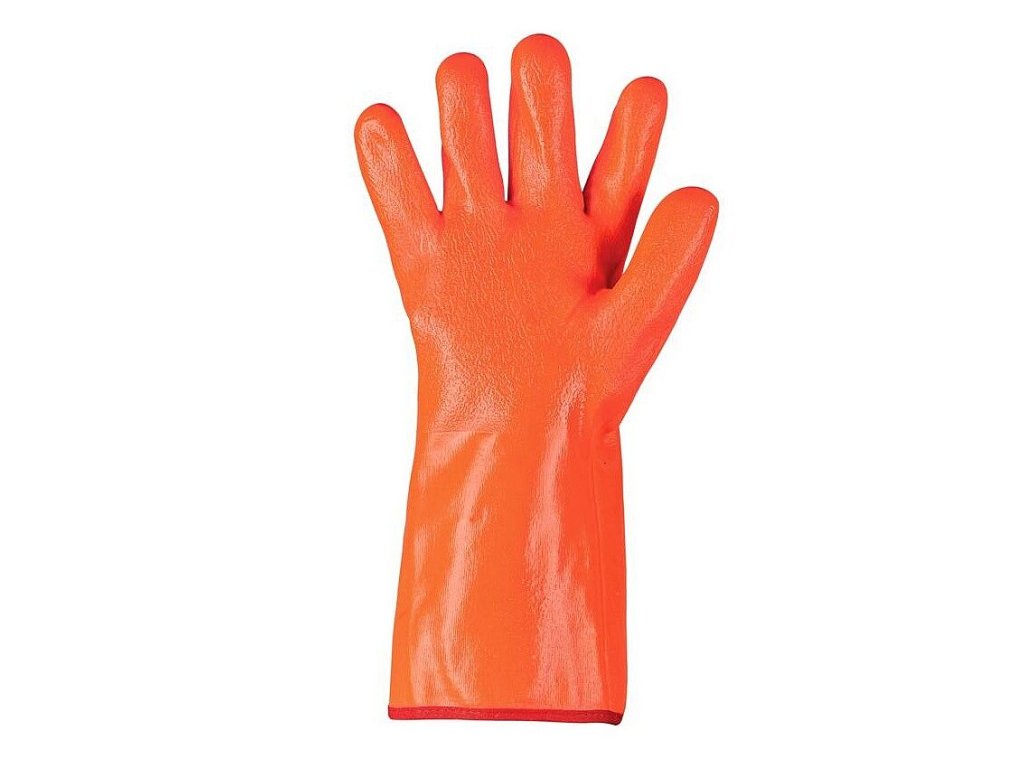 POPIS Zimní rukavice šité z bavlněného úpletu, celomáčené v PVC s polyuretanovou vložkou a teplou flanelovou podšívkou. Dlaňová a hřbetní část s prsty zdrsněny pro lepší úchop. Doporučené použití: prodej ryb, výlovy rybníků Odvětví: práce ve vlhkém a chladném prostředí, mrazírny, chladírenský průmysl, rybářství SPECIFIKACE Délka: 35 cm Materiál: PVC, bavlněná flanelová vložka Norma: EN 511, EN 388, EN 420 Velikost: 11