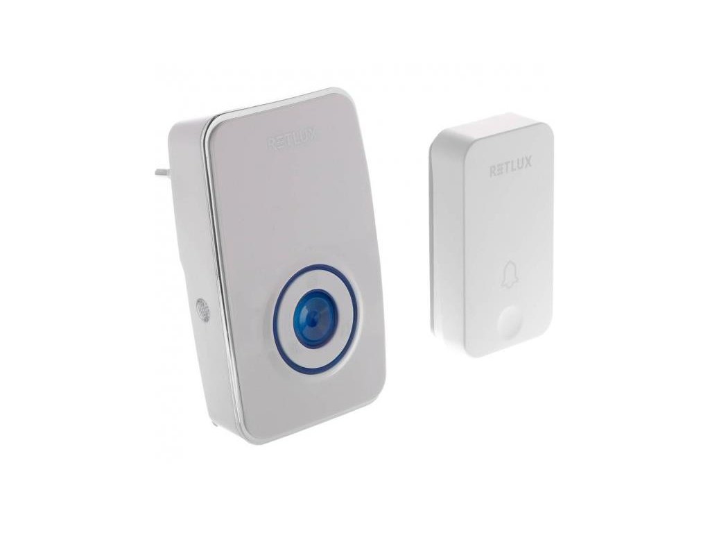 Zvonek bezdrátový RETLUX RDB 101Domovní bezdrátový zvonek s přijímačem. Napájení přijímače 230V a bezdrátovým tlačítkem, které pracuje zcela bez baterií. Tlačítko s třídou ochrany IP44 má dosah až 150 metrů, (ve volném prostranství). Přijímač umožňuje výběr z 51 melodií a světelnou signalizaci zvonění.